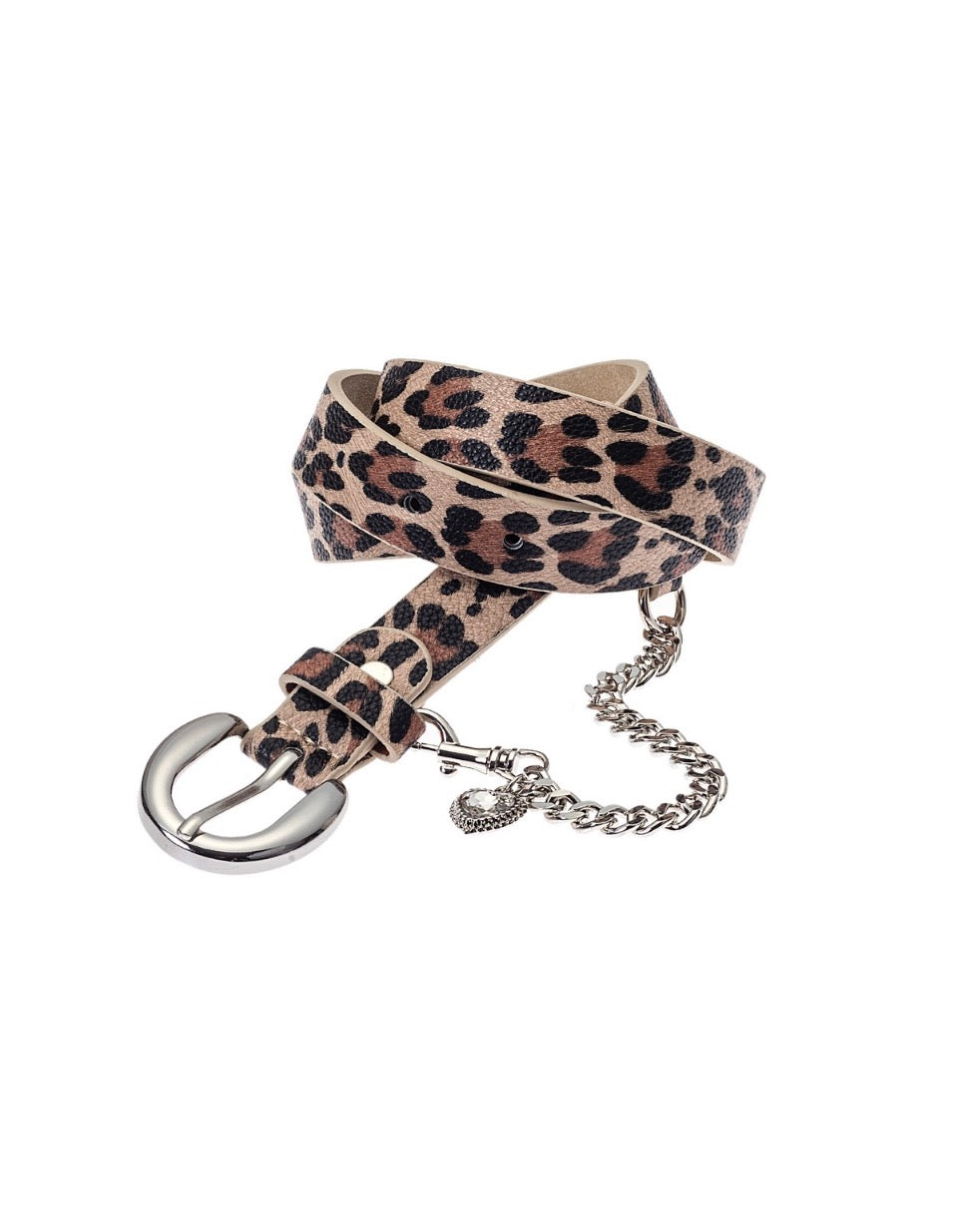 Γυναικεία Ζώνη δερματίνη 2,5cm οβάλ ασημί αγκράφακαι κρεμαστή αλυσίδα με καρδιά με στρας . Σύνθεση: 100% PU