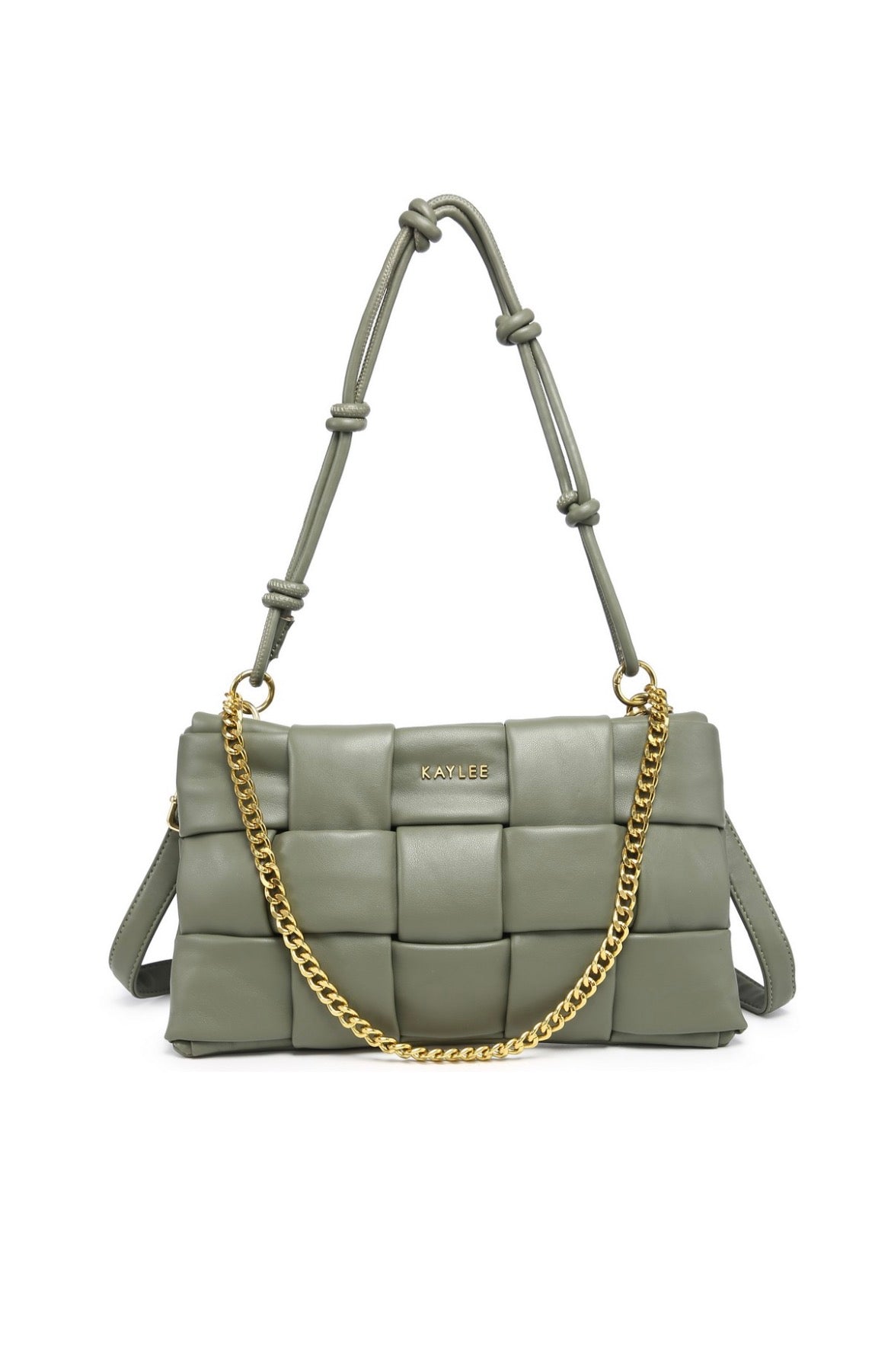 Γυναικεία Τσάντα Kaylee Δερματίνη ώμου και χιαστί με πλεκτό σχέδιο και χρυσή αλυσίδα. Διαθέτει και εξωτερική τσέπη στο πίσω μέρος.Με ρυθμιζόμενο λουρί. Διαστάσεις: Πλάτος 30 × Ύψος 17 × Πάτος 6 εκ.