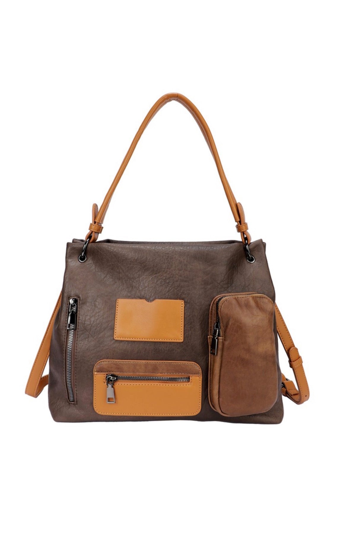 Γυναικεία Τσάντα Δερματίνη ώμου με εξωτερικές τσέπες μπροστά και θέση για κινητό με φερμουάρ. Διαθέτει τσέπες εσωτερικά , και στην πίσω πλευρά τσέπη με φερμουάρ. Διαθέτει λουρί που αυξομειώνεται για χιαστί. Διάσταση: Πλάτος 35 Χ Ύψος 28 Χ Πάτος 12