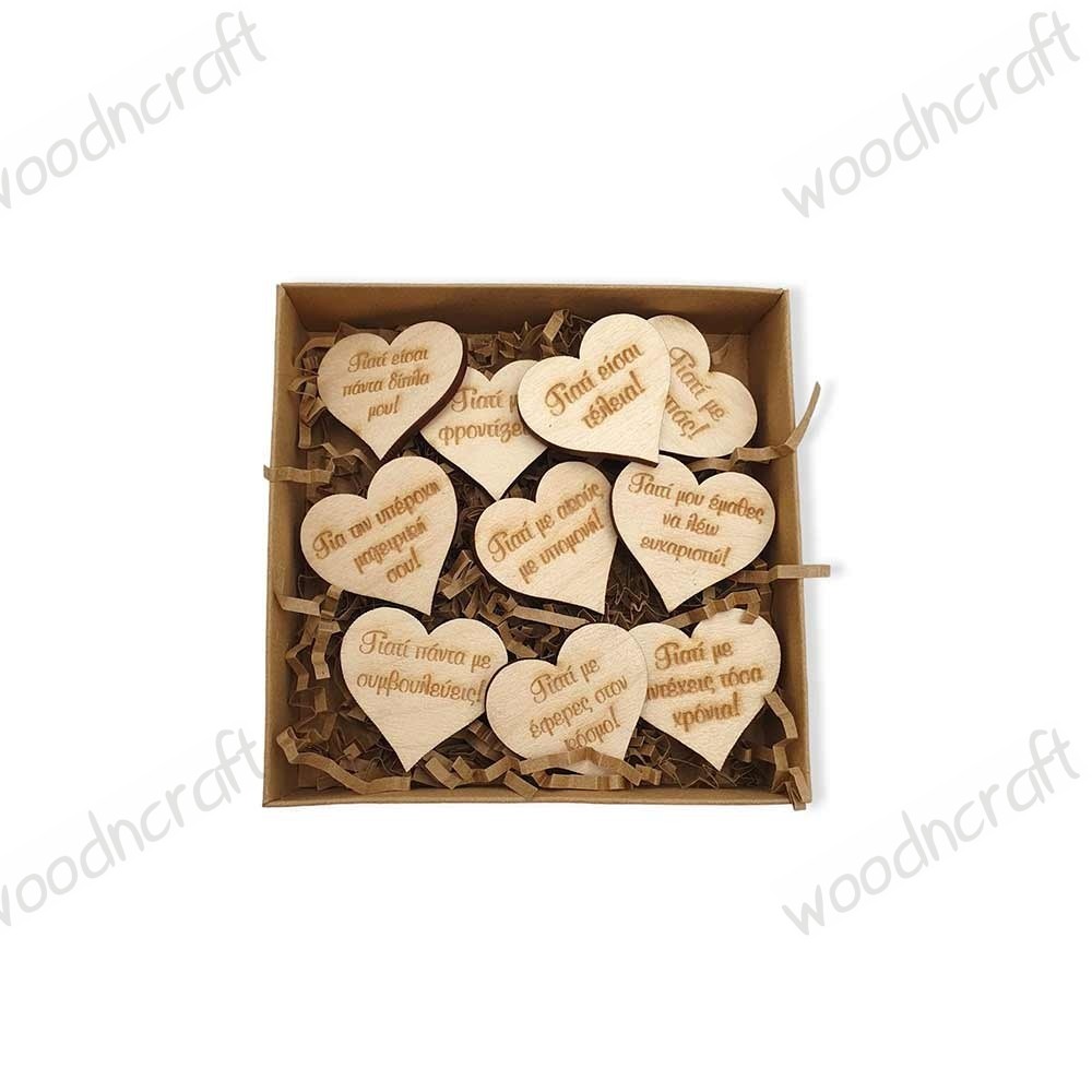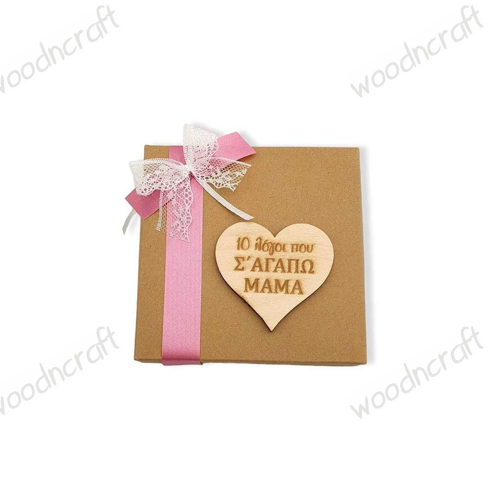 Original and personalized craft gift box decorated with ribbons. It includes hearts engraved with the 10 main reasons why we can love our MOM! A unique, symbolic gift to express your love...!