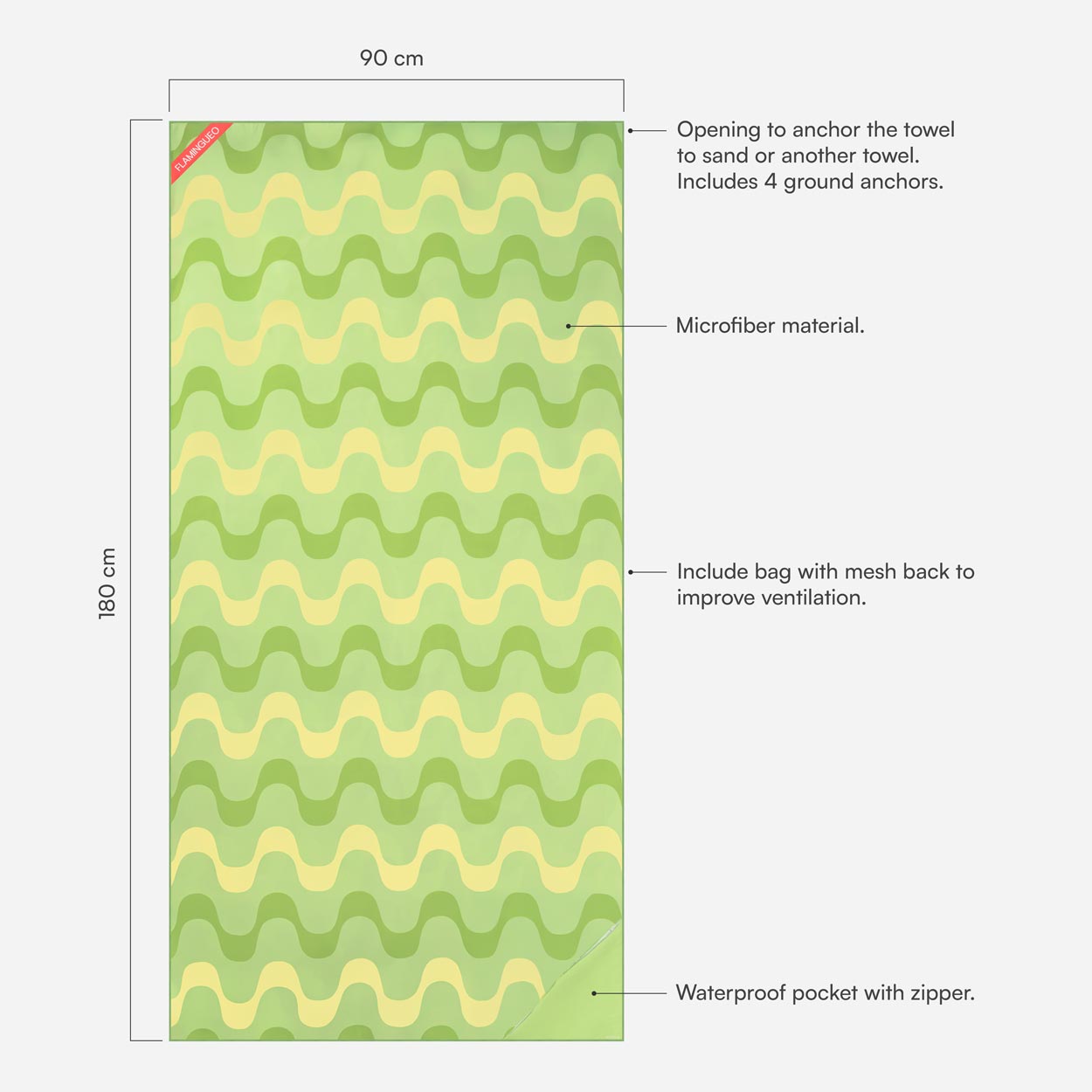 Microfiber Towel 180x90cm Green Ultra-Fast Drying, Ayla - Flamingueo