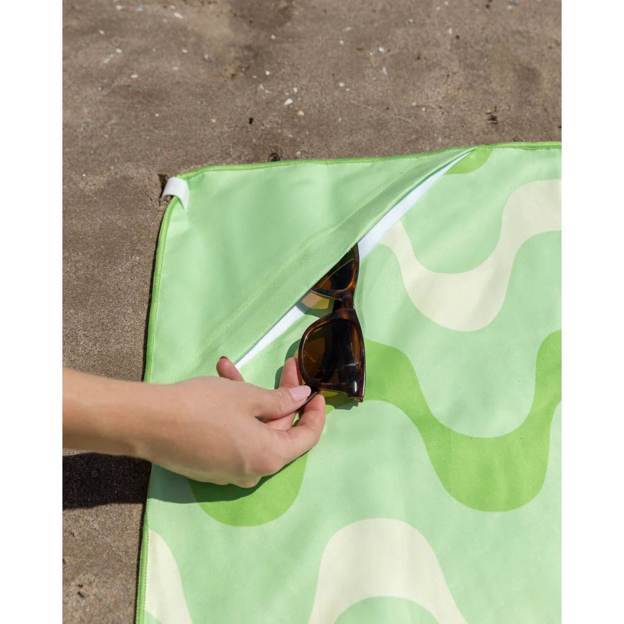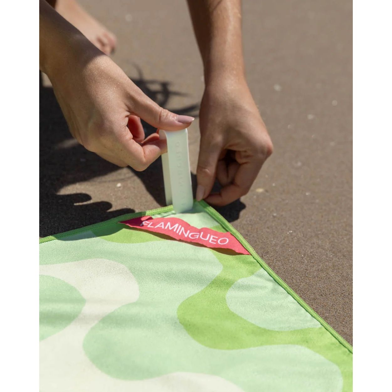 It has a built-in zippered pocket to securely store your personal items, such as your cell phone or keys. In addition, it includes four PVC clips to perfectly secure it to the sand and prevent it from moving in the wind.