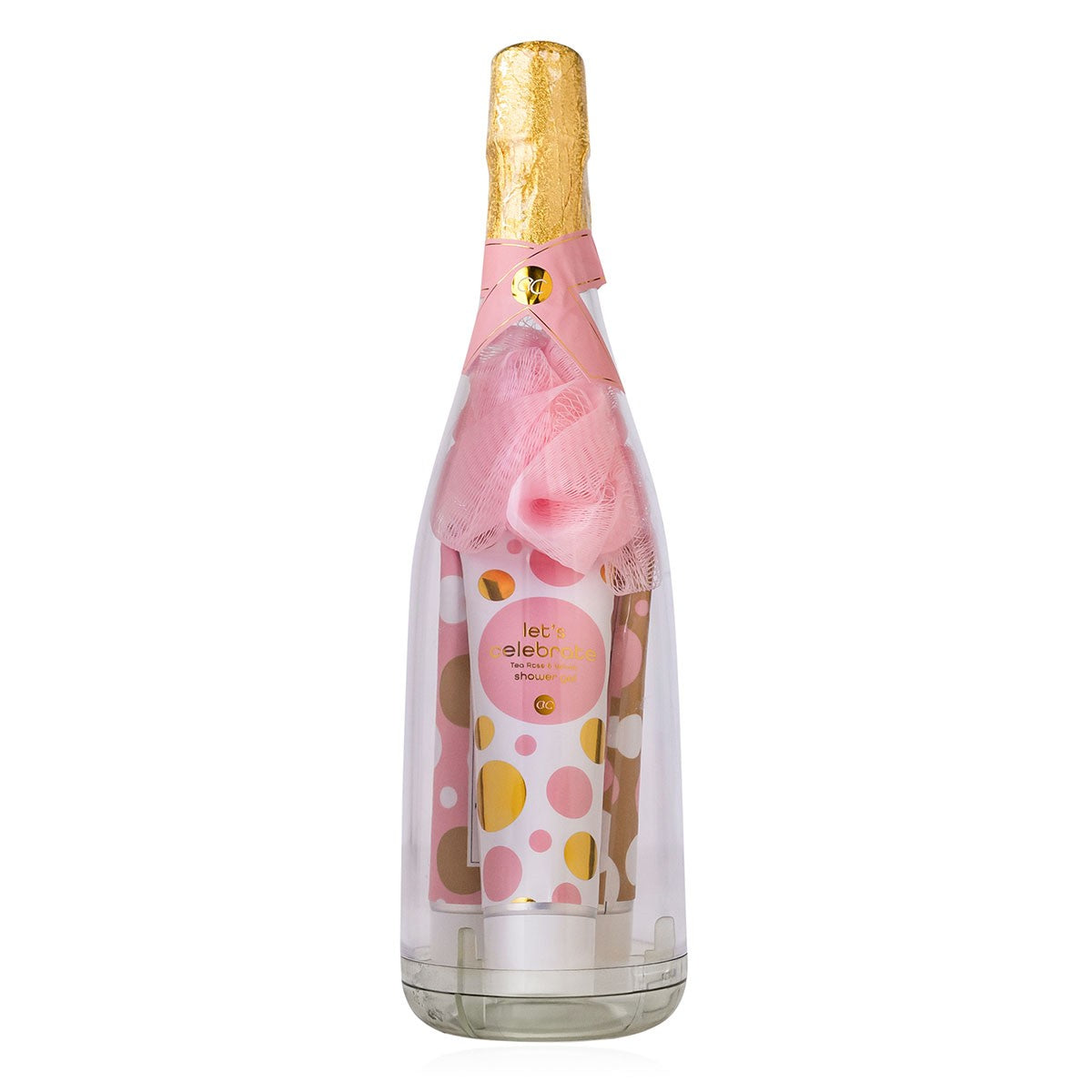 A beautiful bath set in a transparent reusable champagne bottle, which includes 60ml shower gel, 60ml body lotion, 60ml hand and nail lotion & 10g sponge, all with a refreshing Tea Rose & Velvet scent. A practical and extremely useful gift, suitable for any occasion!