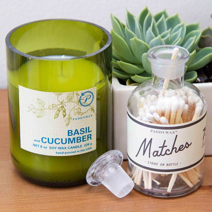 No more searching for lighters in drawers, no more getting up from the couch to light your favorite Paddywax candle! Luxurious glass jar filled with 75 8.9 cm wooden matches with white heads. On the back of the jar there is a special surface so you can safely light your match.