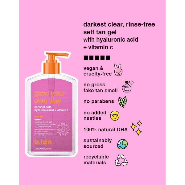 Glow your own way 437ml, Transparent Self tan gel of normal tanning intensity - BTan
