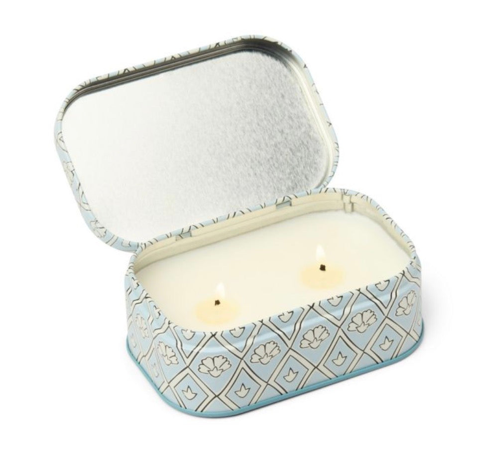 Τα κεριά της συλλογής Cherie χαρίζουν αβίαστα μια αίσθηση γοητείας σε κάθε χώρο. Κομψό μεταλλικό κουτί με διακριτικό μοτίβο, διαθέτει δύο φυτίλια και καπάκι με αφαιρούμενη ετικέτα ώστε μόλις τελειώσει το κερί, να μπορεί το δοχείο να χρησιμοποιηθεί για να φυλάξετε κοσμήματα ή μικροαντικείμενα! Συνδυάζεται άψογα με το κεραμικό κερί Cherie της ίδιας σειράς. Κερί από 100% σόγια με διπλό βαμβακερό φυτίλι σε μεταλλικό δοχείο με καπάκι. Νότες κορυφής: Πέταλα Κυκλάμινου, Φύλλα Ευκαλύπτου, Λιωμένη Λεβάντα. Μεσαίες Νότες: Λευκό Θυμάρι, Ροδοκόκκινη Παιώνια, ʼγρια Μιγκε. Νότες βάσης: Soft Musk, Ορχιδέα, Βανίλιας, Σπόρος Τόνκα. Η διάρκεια και η ένταση αρώματος αντιστοιχούν σε 29+ ώρες ορθής καύσης.