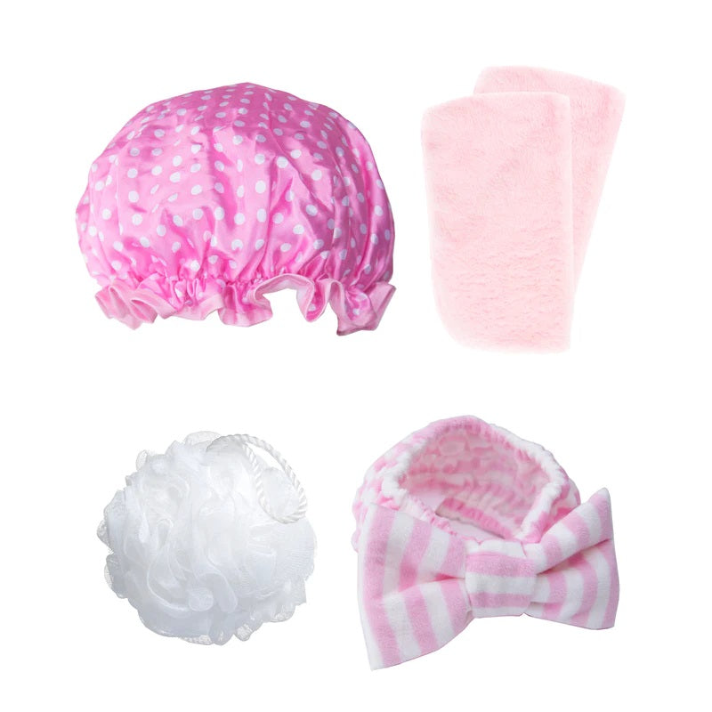 Pink Spa Gift Set with headband, Shower Cap, sponge and makeup remover wipes - By Upper Canada