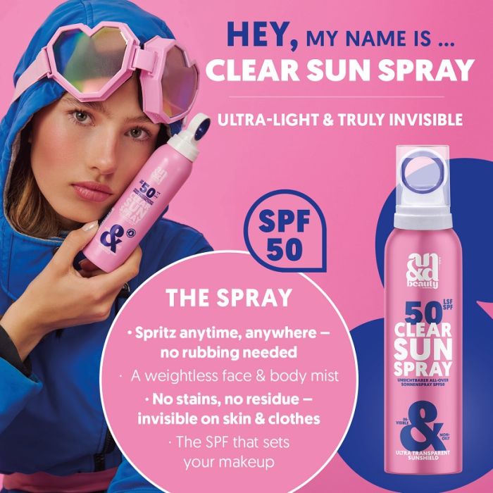 Transparent sunscreen spray mist for face & body with SPF 50, 100mL - AND beauty
