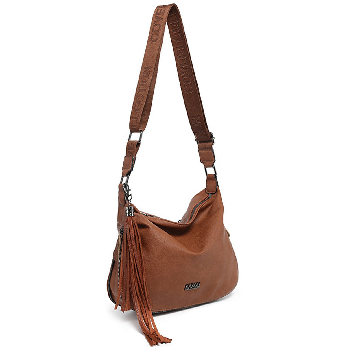 Τσάντα Δερματίνη Coveri μεσαία χιαστί με φερμουάρ στο πάτο και αποσπώμενη διακοσμητική φούντα.