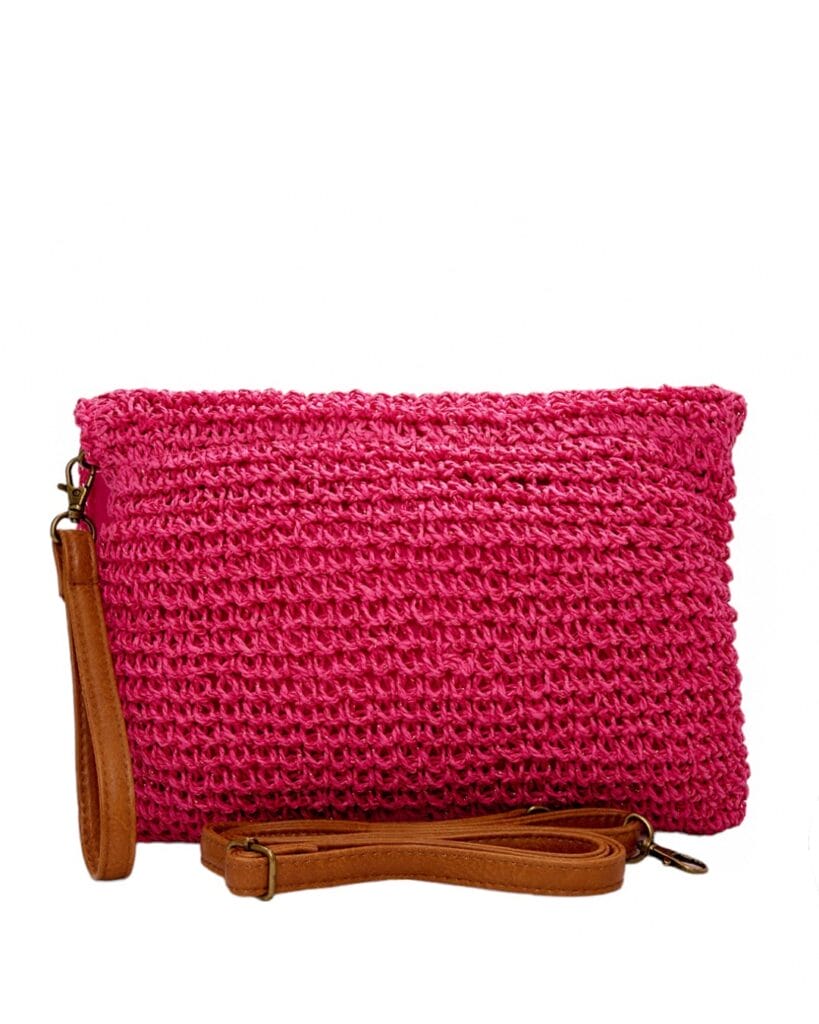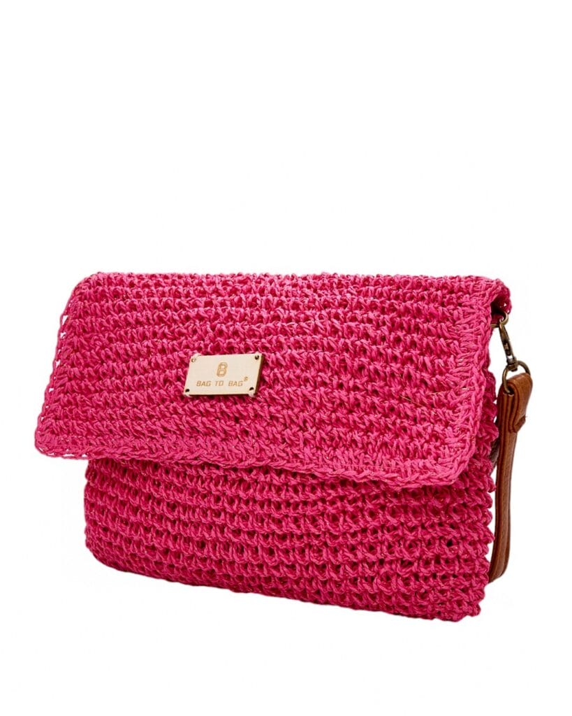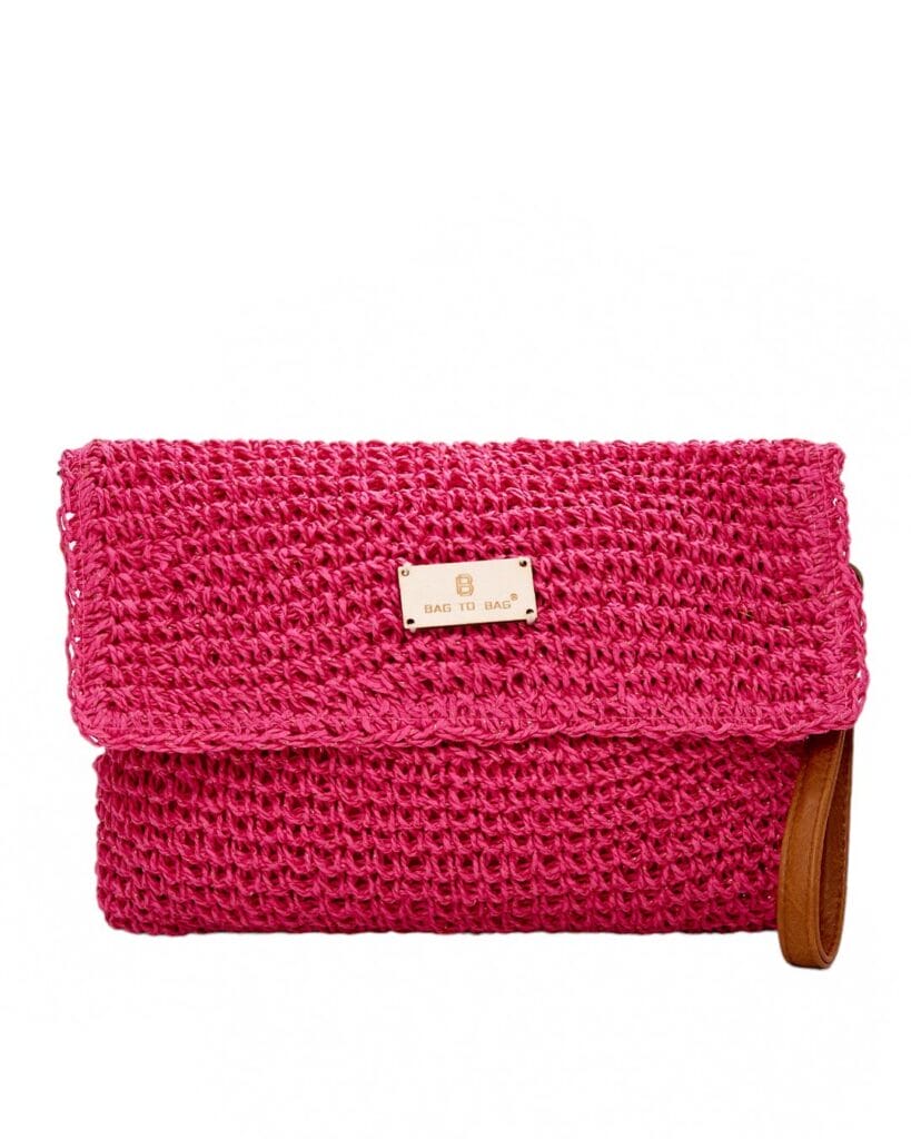 Ψάθινο Τσαντάκι χειρός σε χρώμα ροζ - CN23116